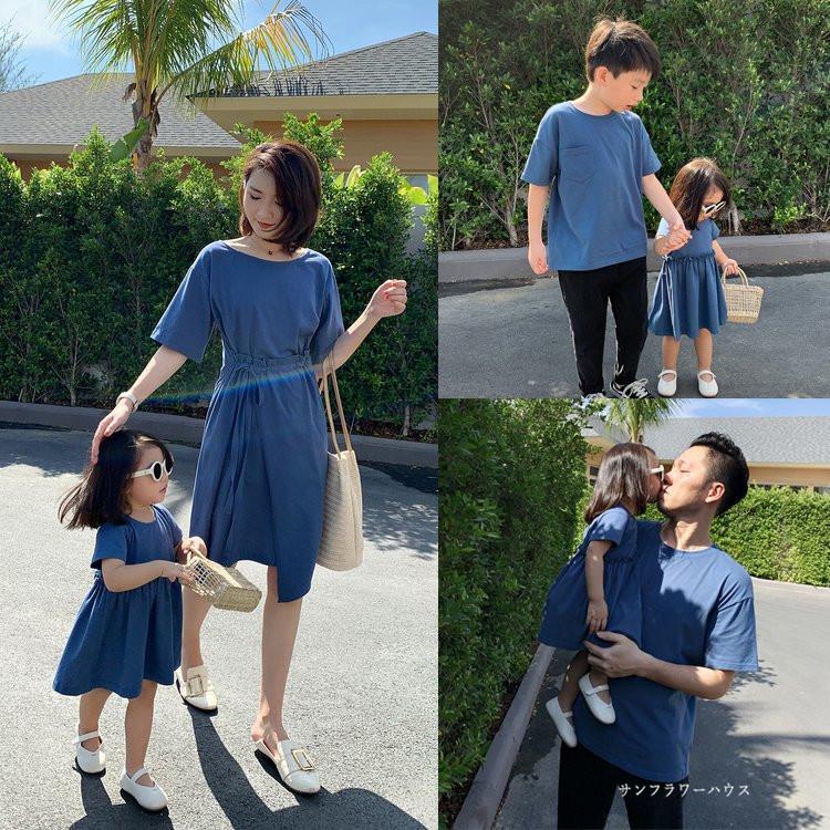 親子 ペアルック 親子コーデ リンクコーデ お揃い ペアtシャツ ワンピース 半袖 カップル 親子ペア ネイビー 無地 誕生日 パパ 父の日ギフト プレゼント 撮影 Okooyako77ab サンフラワーハウス 通販 Yahoo ショッピング